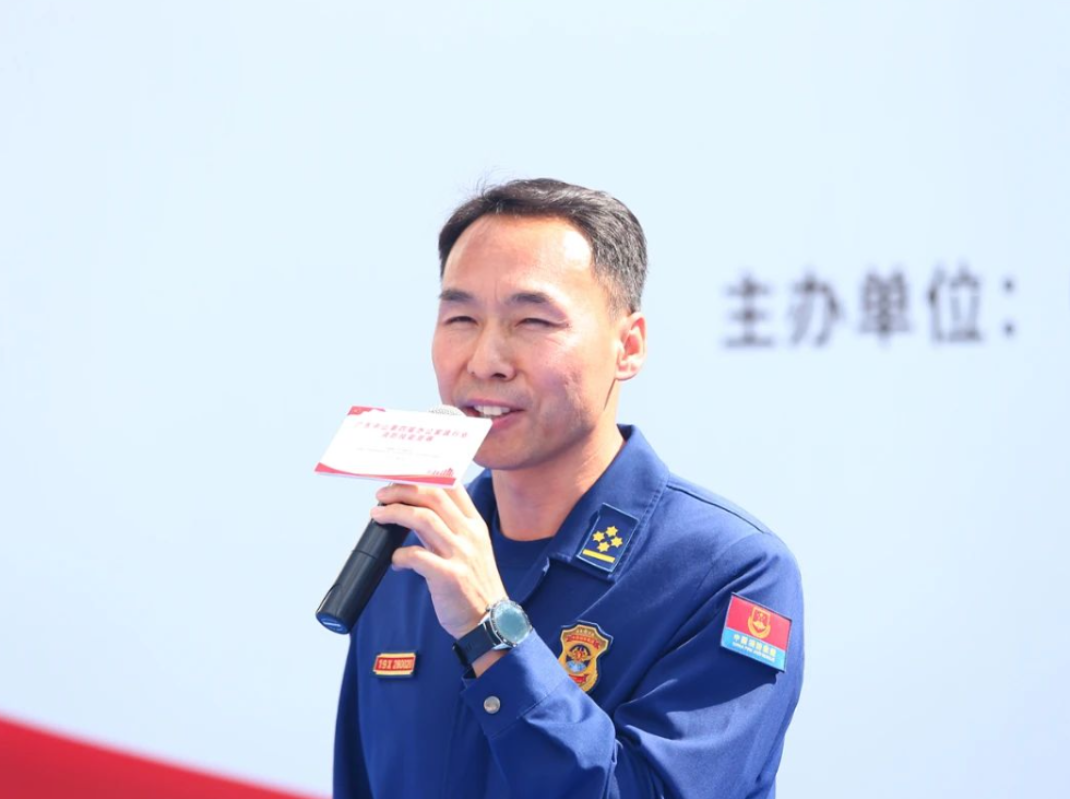 ▲赛后总结:中山市消防救援支队东升大队大队长韩新军先生点评竞赛,总结发言。