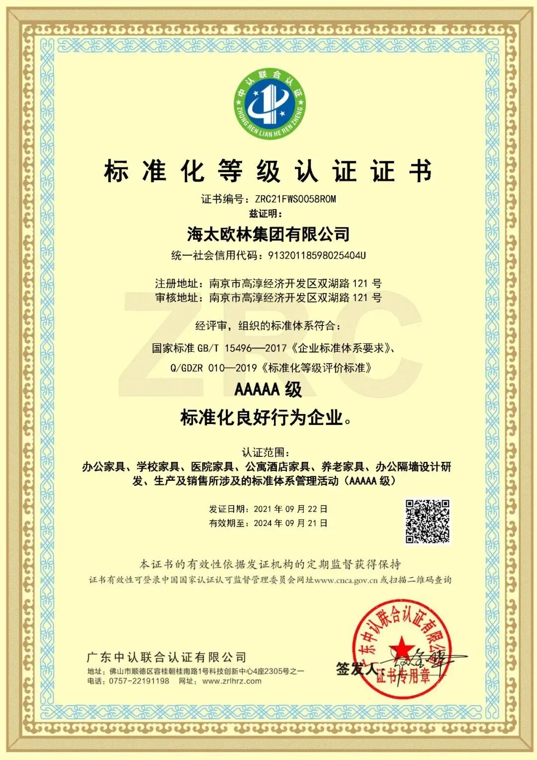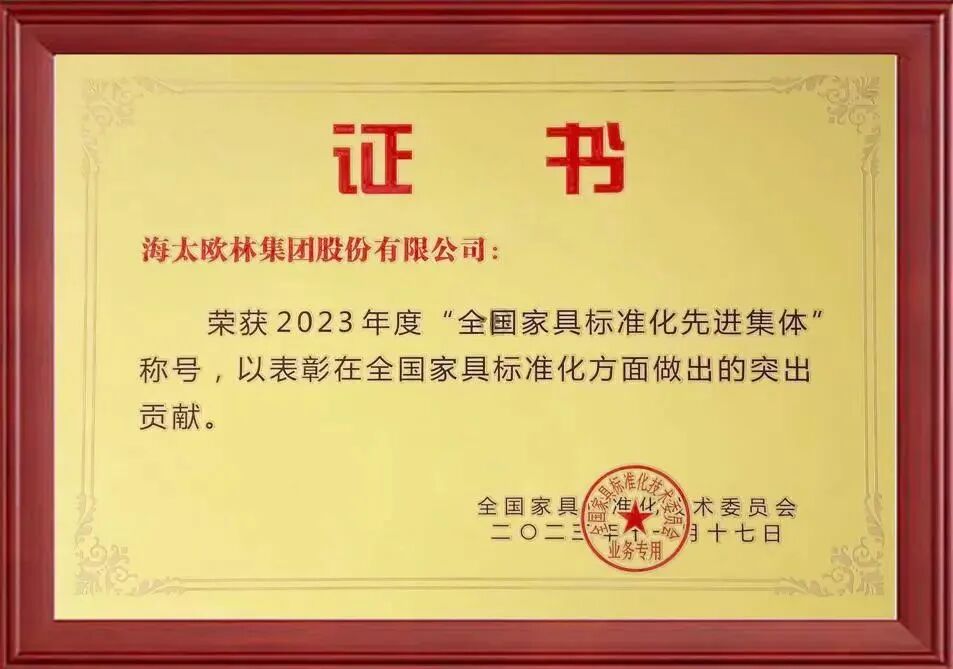 【会长风采】海太欧林集团荣获2023年度“全国家具标准化先进集体”称号