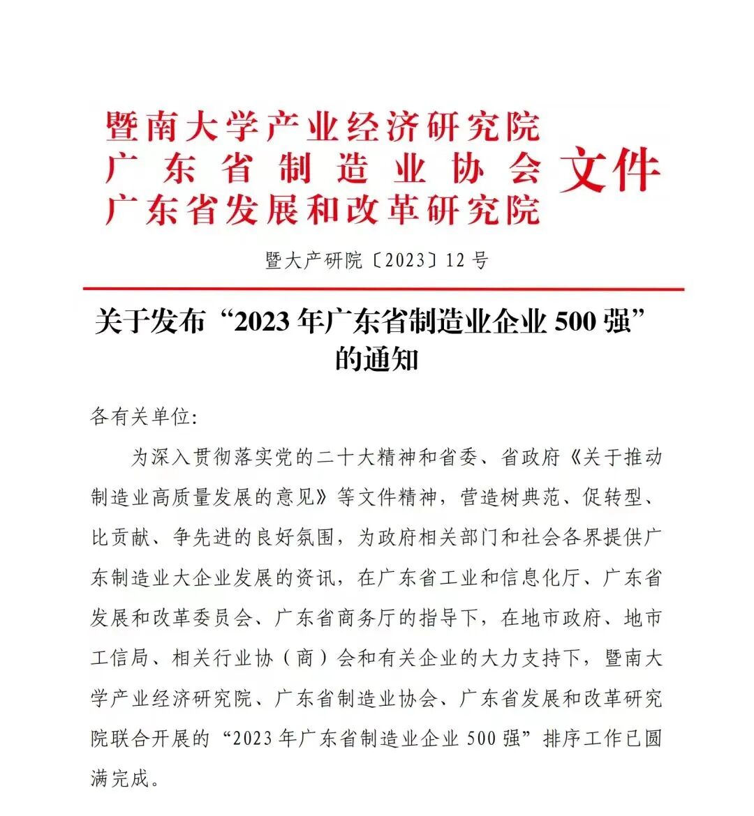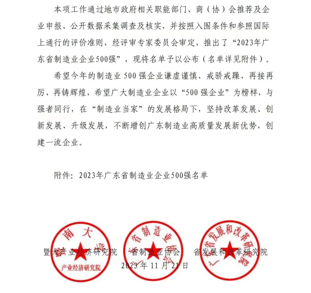 据悉,该榜单自2013年首发至今已有11年,始终坚持“科学、权威、专业、公正、广泛”的评选原则,由评审专家委员会参照国际通行方式,并以企业营业收入及其他相关指标、数据为依据进行评审遴选,是业内极具影响力的榜单之一。迪欧能够在众多知名企业中脱颖而出,实现连年登榜,不仅是对我们长期坚守高质量发展,持续提升核心竞争力的高度认可,更是对迪欧在推动广东经济发展和产业升级中发挥中坚作用的褒奖。