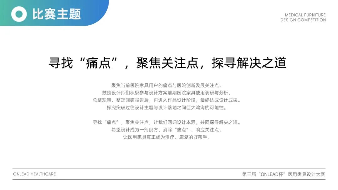 希望通过王晓志总经理的解读能为“ONLEAD杯医用家具设计大赛”的参赛选手梳理设计思路,明确设计内容,积极参加到杯赛中来,期待大家的投稿。