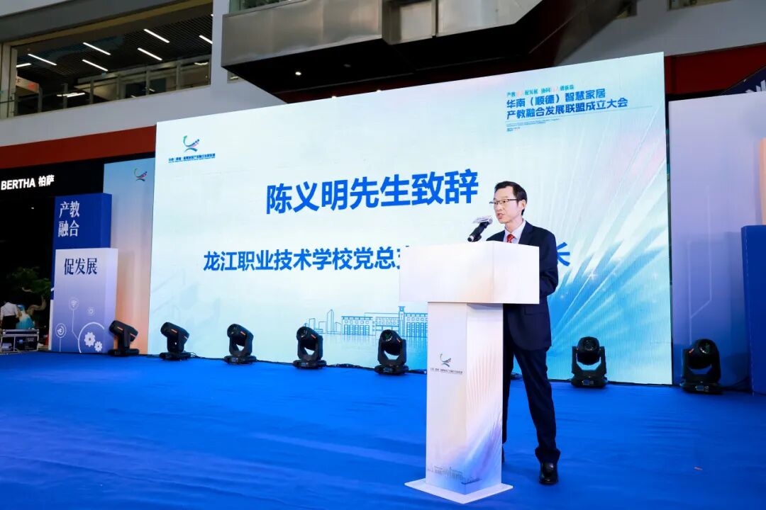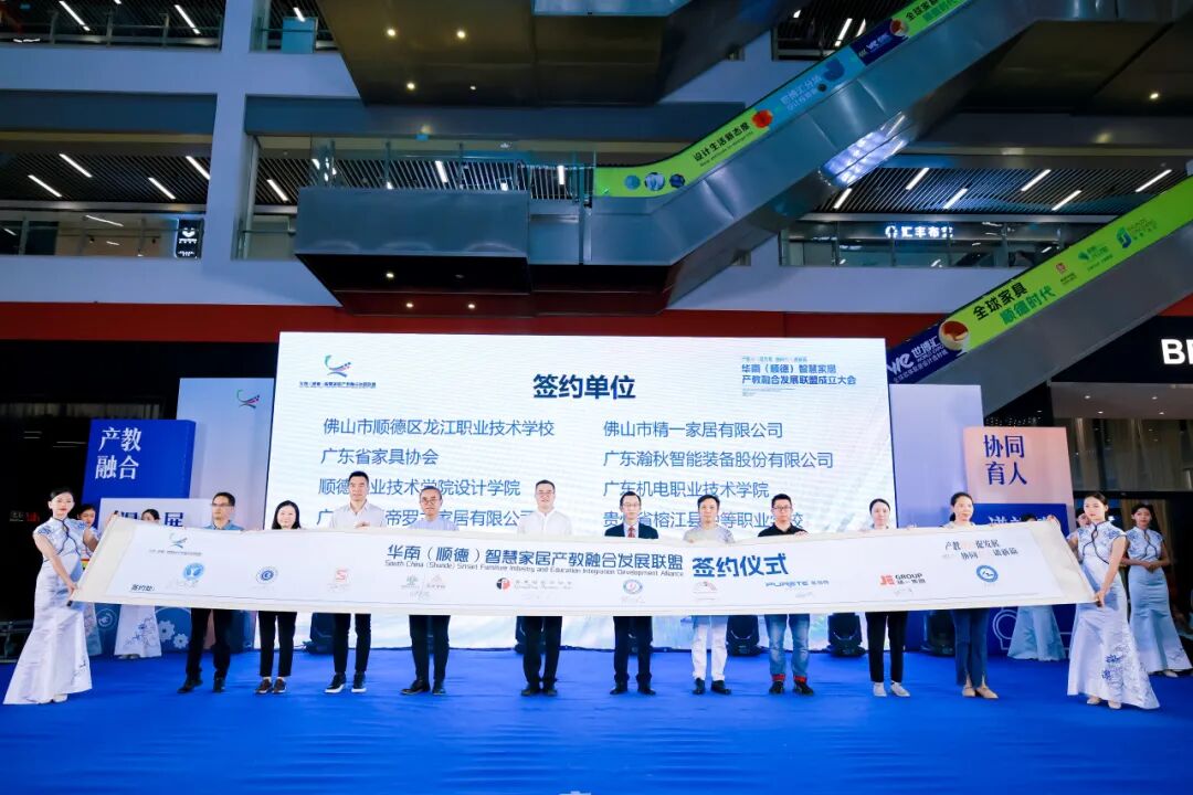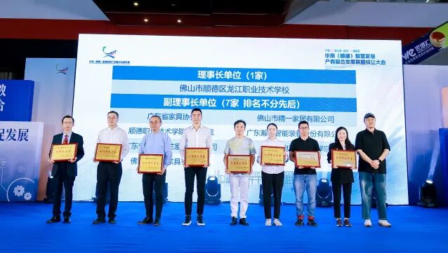 10月31日下午,由佛山市顺德区教育局主办,佛山市顺德区龙江职业技术学校牵头组成的华南(顺德)智慧家居产教融合发展联盟,在佛山市顺德区龙江镇世博汇举行成立大会。佛山市顺德区教育局副局长冼弥冬、广东省家具协会会长王克、龙江职业技术学校校长陈义明、中国家具协会职业技能培训中心副主任杨帆等嘉宾出席大会并致辞。来自政府、行业协会、企业、科研机构、大中专院校等单位的领导和代表共300多人出席大会。