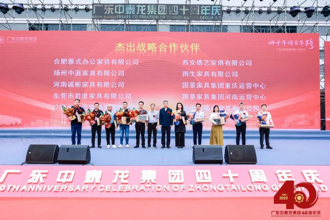 10月29日,“四十年情 百年路”广东中泰龙集团四十周年庆典活动在中山市南区中泰龙威利智慧家居科技产业园隆重举行!中国家具协会理事长徐祥楠、副理事长兼秘书长屠祺,中山市政协副主席徐小莉,广东省社会组织党委委员、广东省家具协会会长王克,广东省家具协会执行会长兼秘书长张承志,中国对外贸易广州展览有限公司总经理刘晓敏,中泰龙集团董事长陈秋桂、总裁刘革生、总经理陈琼,各友好商协会单位领导,新闻界媒体,中泰龙全国各地经销商、供应商、服务商代表,齐聚一堂、共襄盛会!