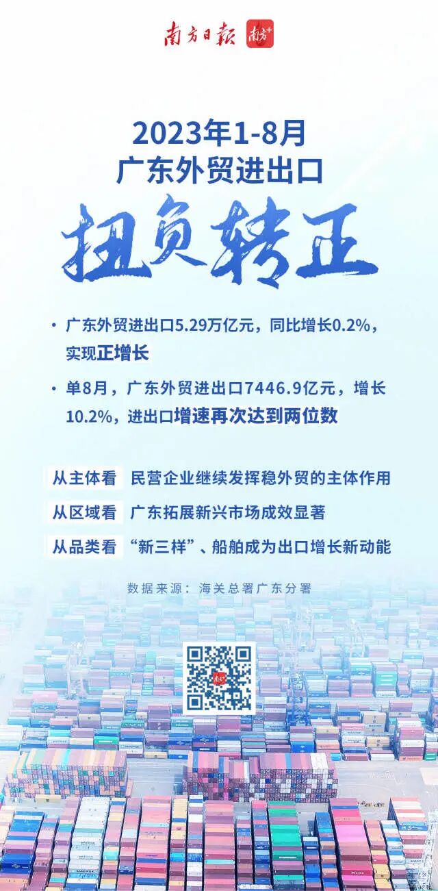 【经济资讯】今年前8个月广东外贸进出口扭负转正