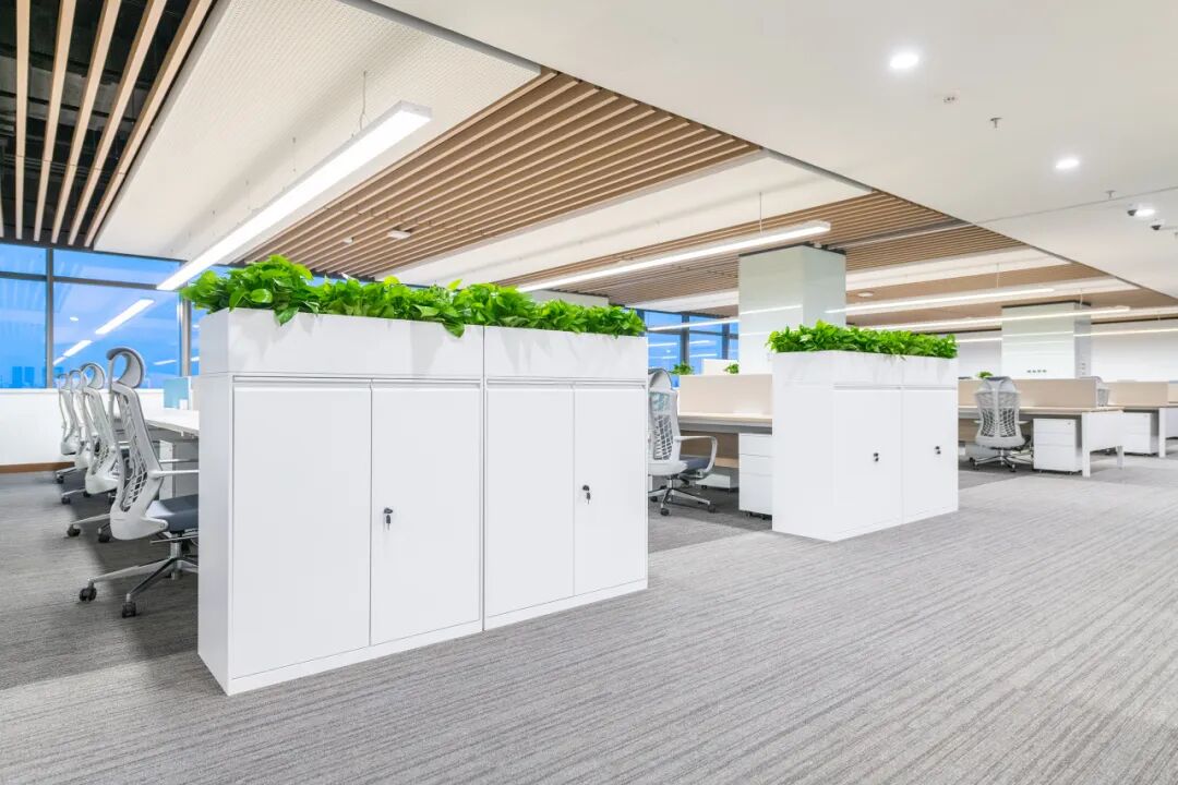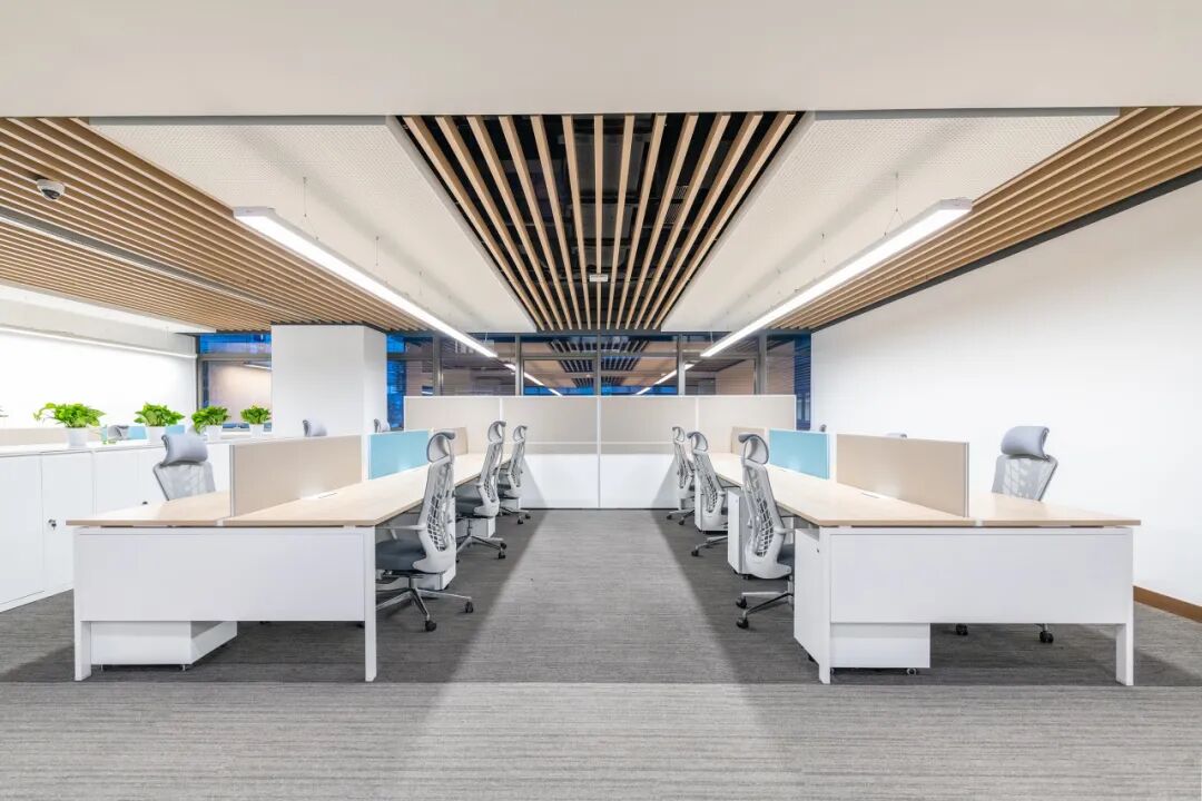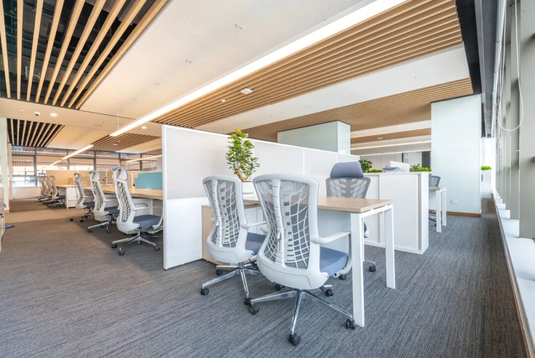 办公家具的布局注重空间流线及秩序感,无隔档的工作空间更益于有效的成员沟通与企业效率,营造通透、舒适的空间氛围。