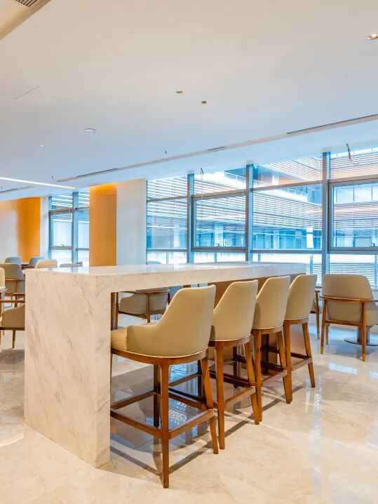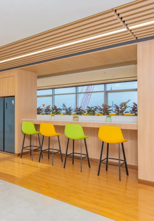 活跃的家具色彩和多元化的空间形式搭配,形成错落的节奏美感,营造了一份充满自然气息,将身处繁忙公务之中的人释放、缓解,和抚慰。