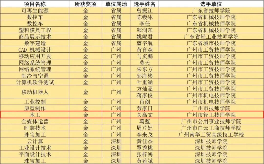 【技能竞赛】喜报 | 广东荣获全国第二届职业技能大赛木工、精细木工、木工金银铜等众多奖项