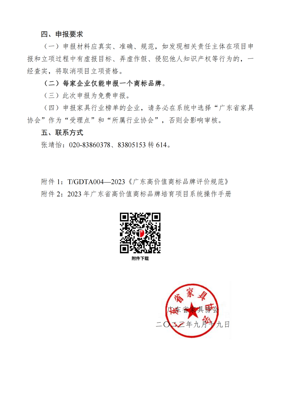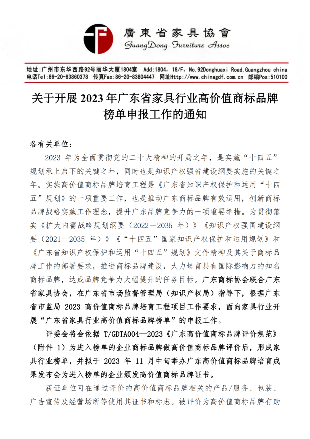 【协会通知】关于开展2023年广东省家具行业高价值商标品牌榜单申报工作的通知
