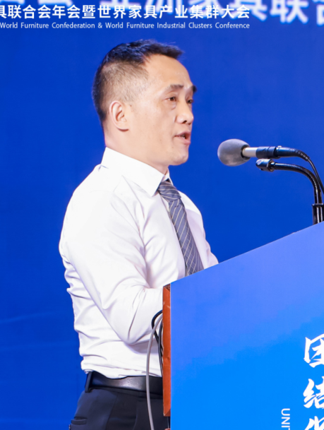 中国家具协会理事长徐祥楠致辞,他指出,本次大会为国际家具产业开展务实合作搭建了新平台,开辟了新前景。希望各方共同努力,以此次会议为契机,在深化互联互通的基础上,汇聚全球优质资源要素,实现高水平开放共享;以积极姿态拓展经贸关系,推动跨境电商等国际合作形式有序发展;通过建设对话机制,充分发挥世界家具联合会、亚洲家具联合会、欧洲家具工业联合会等国际组织平台优势,为全球家具产业共荣共兴做出积极努力。