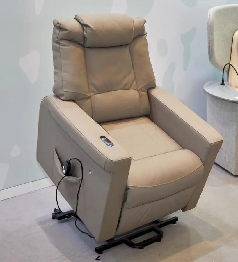 作品描述:海太欧林多功能适老沙发(瓦里)具有辅助站立及红外加热及体征分析等功能。功能沙发满足了消费者对沙发舒适度上的追求。与传统沙发相比,功能沙发根据人体工程学设计,依靠内部线性驱动作为核心动力来源,通过手柄控制器控制沙发升降、倾斜及伸展,为消费者提供最合适的角度,使头部、颈部、腰部、膝盖直至双脚均处于完全放松的状态,促进血液循环,更有益于身体健康。扶手部分植入智能体征监测模块,可监测心跳、血压血氧等数据,老人随时了解自身身体体征数据。