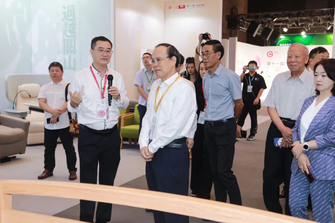 展览期间,广东省常委、副省长王曦在省工业和信息化厅厅长涂高坤、广东工业大学校长邱学青等领导陪同下,莅临广东省家具协会承办的第十一届“省长杯”工业设计大赛泛家居专项赛优秀作品展区参观指导。
