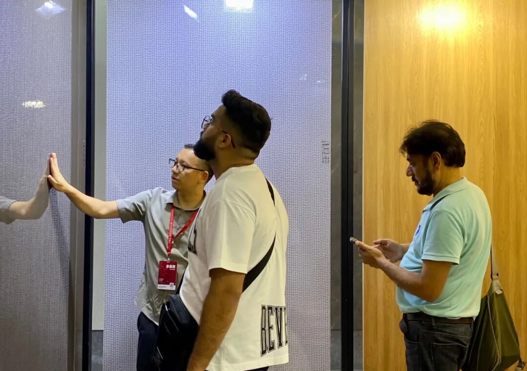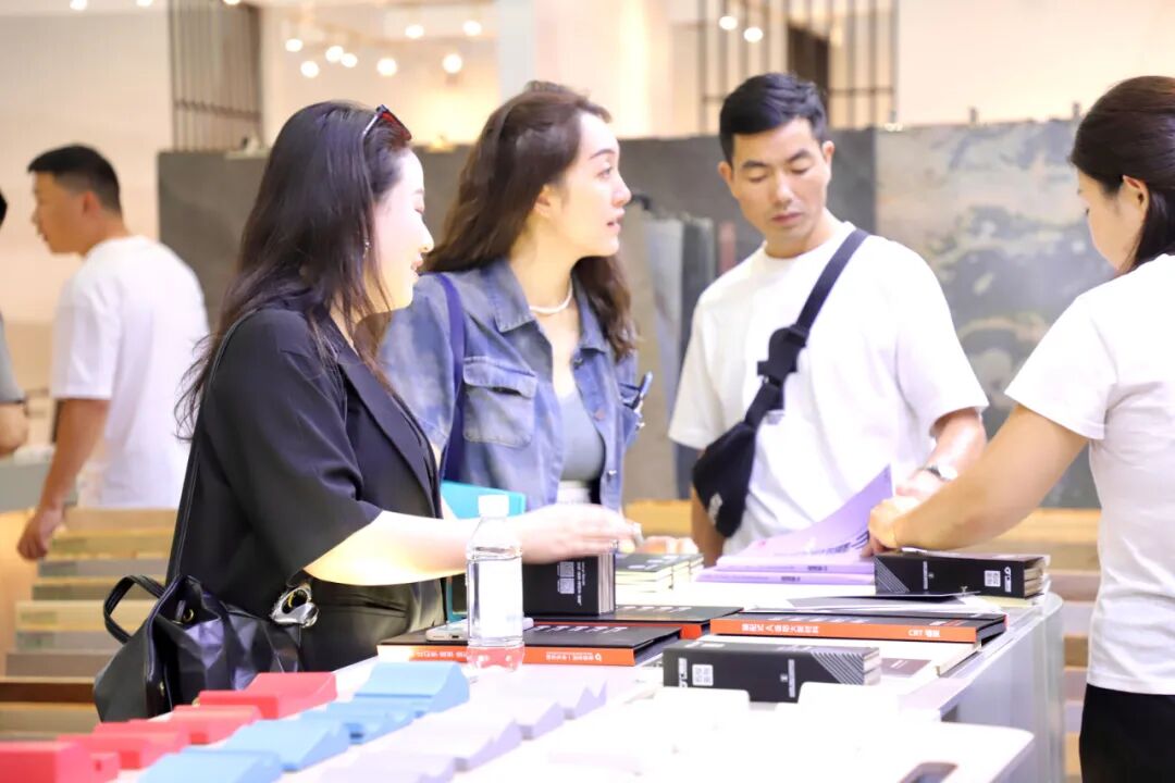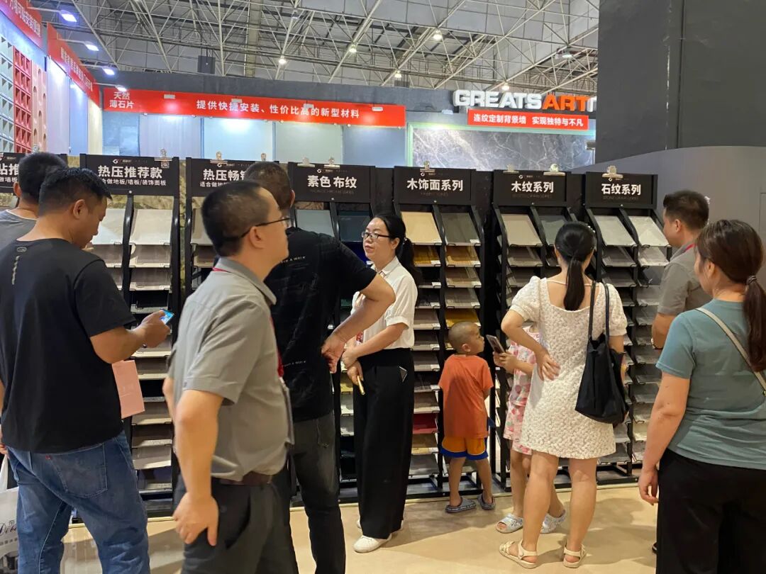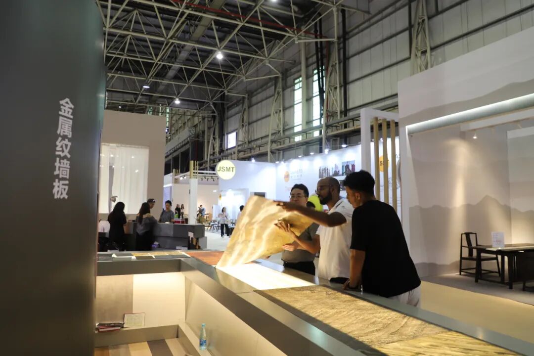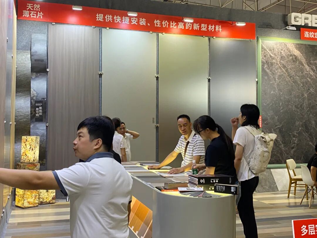 展会现场,接待人员认真地向观展者讲解广厦新材的构成以及最新产品,引导观展者切实感受每一处细节。