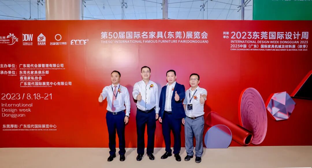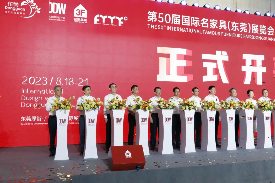 8月18日,第50届国际名家具(东莞)展览会在东莞厚街广东现代展览中心开幕。东莞市委常委、副市长邢文聚,中国家具协会理事长徐祥楠、副理事长兼秘书长屠祺,东莞市厚街镇镇长陈尚荣,广东省家具协会会长王克,东莞名家具俱乐部理事长林炳辉,香港家私协会主席张呈峰等,以及家居卖场负责人、优秀销售商代表出席开幕式。