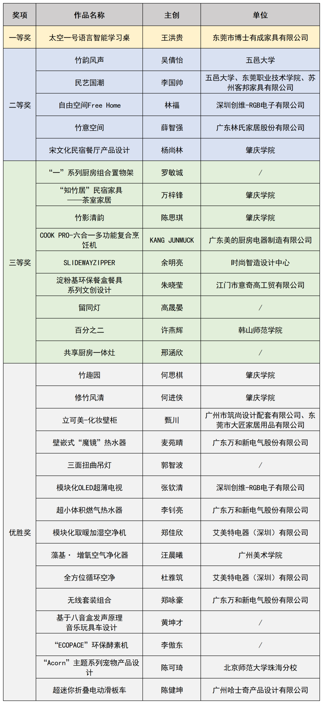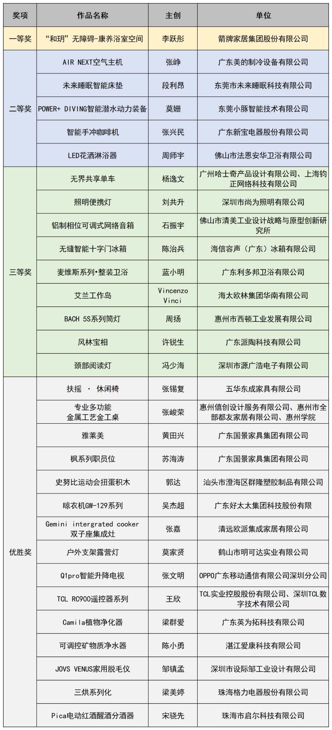 产品设计组获奖名单
