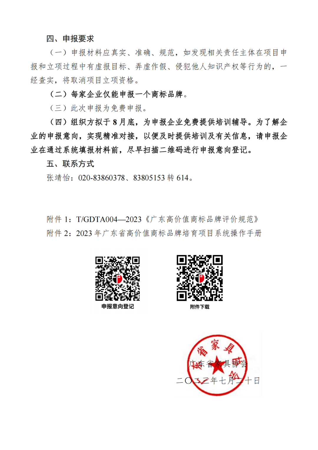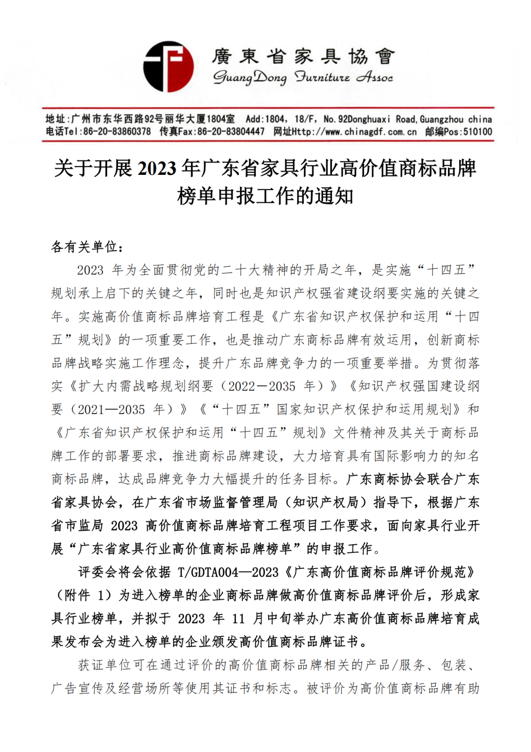 【协会信息】关于开展2023年广东省家具行业高价值商标品牌榜单申报工作的通知