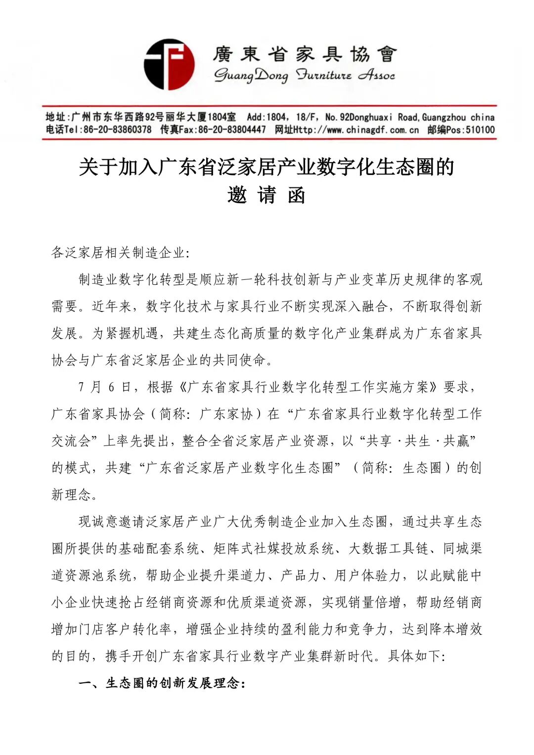 【数字化】邀请函 | 关于加入广东省泛家居产业数字化生态圈的邀请函