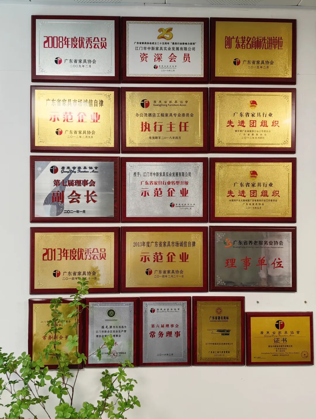 成立于1992年的中新家具,秉承“重品质、创品牌”的企业理念,一路无惧艰难与挑战,不断超越自我,并最终成长为一家生产高档酒店、办公家具,集专业设计、生产、销售于一体的大型企业。 31年丰富的管理经验与技术沉淀、持续创新的机制与管理体系,并通过“ISO9001”国际质量体系认证及“ISO14001”国际质量环境体系、“ISO14024”环境标志产品认证、以及无毒害(绿色)家具认证。从1992年起,“中新”牌先后荣获诸多大奖以及荣誉称号:“AAA”企业、“守合同重信用企业”、“A级纳税人”,“中新”牌更是荣获2023中国高端商务办公家具十大品牌、2023中国酒店家具十大品牌、2023中国绿色酒店家具十大品牌、2023中国酒店家具质量标杆企业、2023中国绿色医养家具十大品牌、2023中国适老家具十大品牌等诸多奖项。