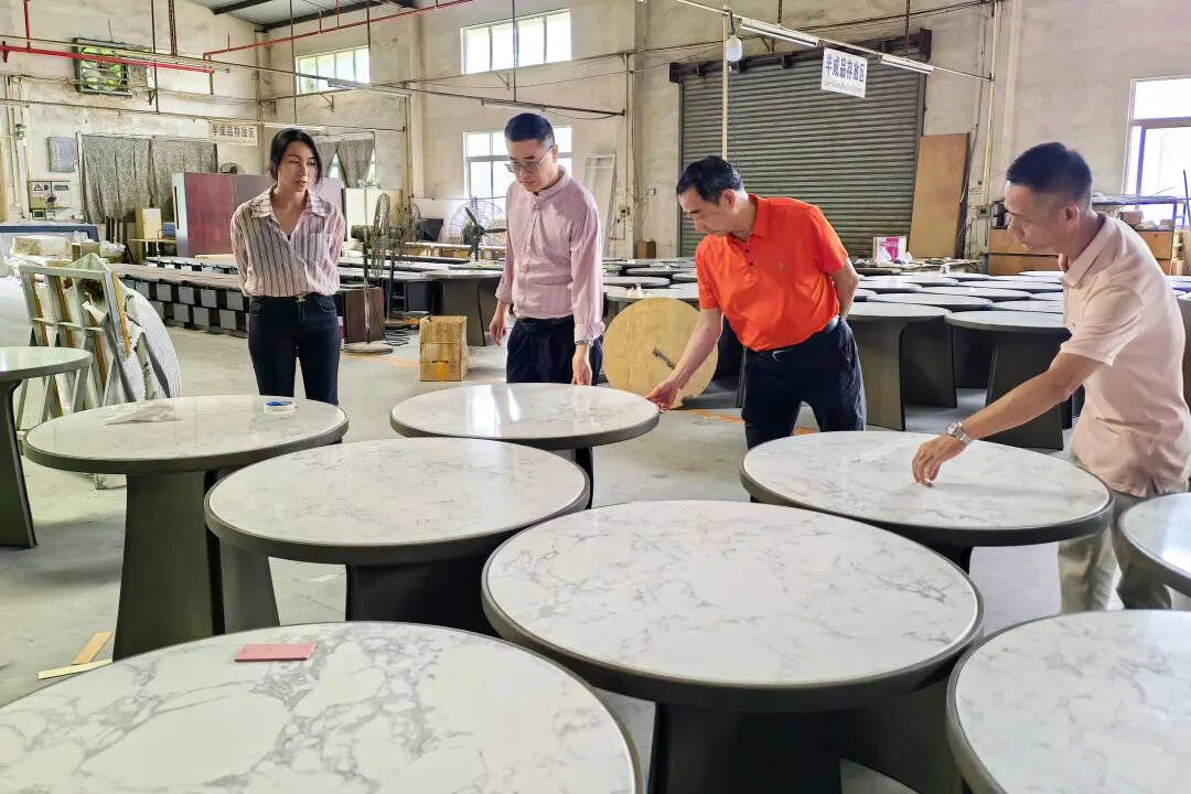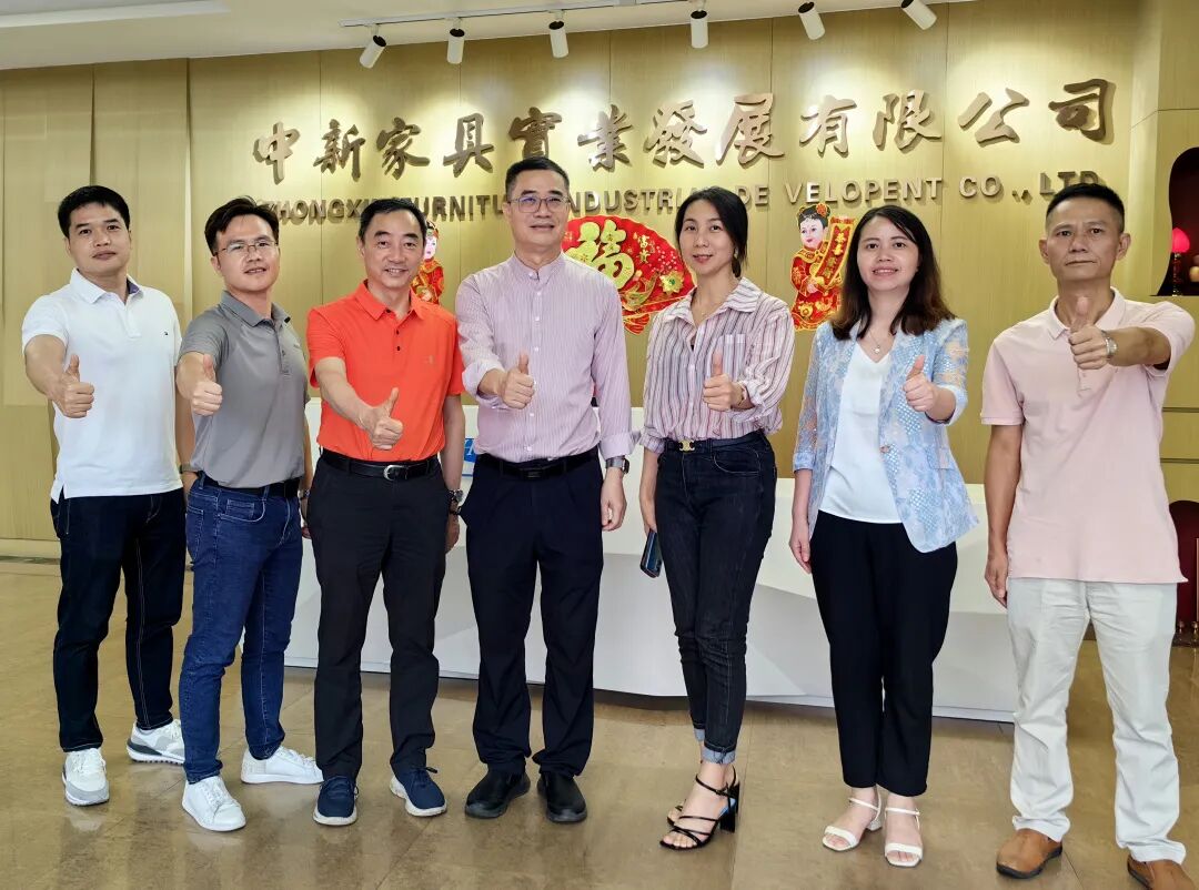 6月8日,广东省家具协会会长王克、执行会长兼秘书长张承志一行前往协会副会长单位江门中新家具实业发展有限公司调研,深入了解企业发展情况。董事总经理陈元洪、执行副总经理张景妙热情接待并详细介绍了企业在生产制造、品牌建设、市场销售等方面的情况。