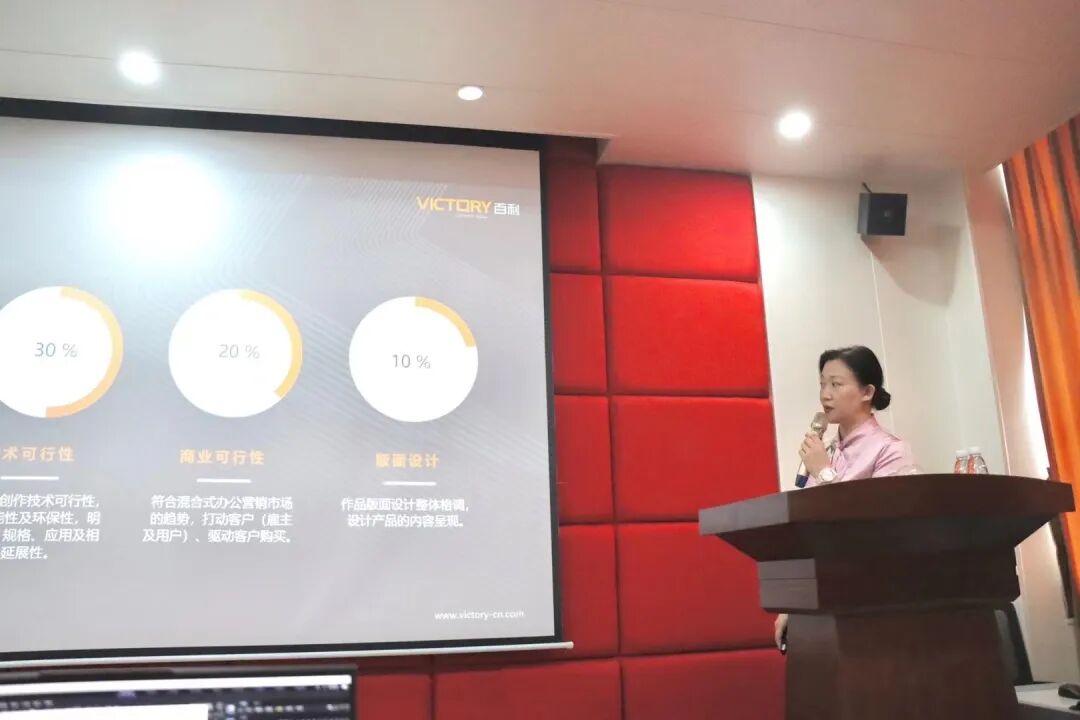 百利集团创展中心项目品牌总监吕春颖向师生们详细介绍了集团和华笔奖第十二届“百利杯”办公家具设计大赛的详细内容,期待同学们能了解百利,积极参与到“百利杯”大赛中来。