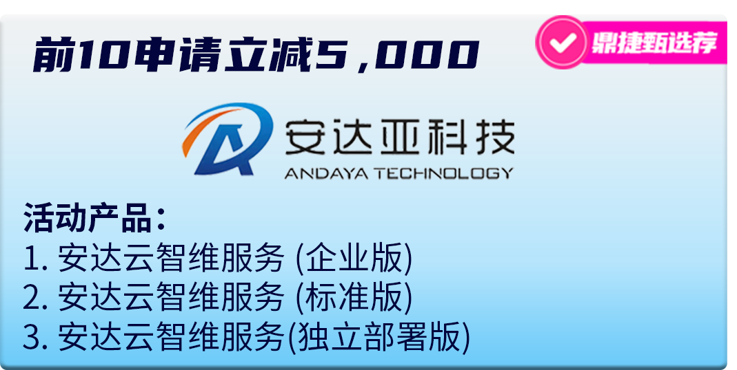 此次【鼎捷智造节】期间,购买安达云智维服务标准版/企业版,将抽取10名用户最高抵扣5000元服务费,预约报名将抽取5名幸运客户,提供安达云智维服务标准版两周的免费试用权益!