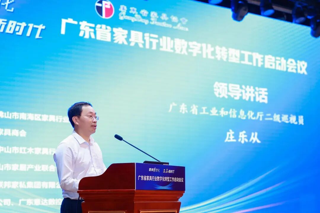广东省工业和信息化厅二级巡视员庄乐从出席会议并致辞,他说,广东将家具行业列为战略性支柱产业进行重点培育,由省工信厅牵头印发了《广东省实施消费品工业“数字三品”三年行动方案》《广东省家具行业企业数字化转型指引》,以推动全省消费品工业数字化转型和应用水平迈上新台阶。广东省家具协会积极作为,编制《家具行业数字化转型工作实施方案》,推动行业高端化、智能化、绿色化发展。