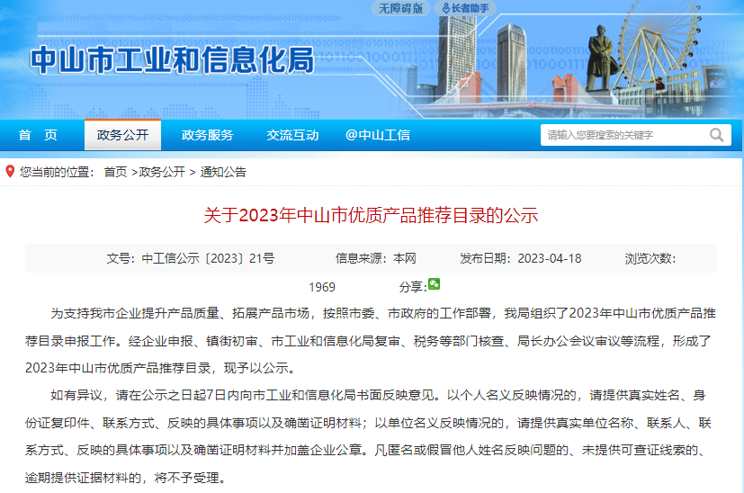 【会长风采】中泰入选!2023年中山市优质产品公示