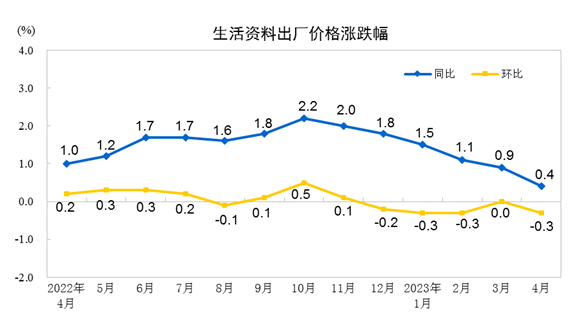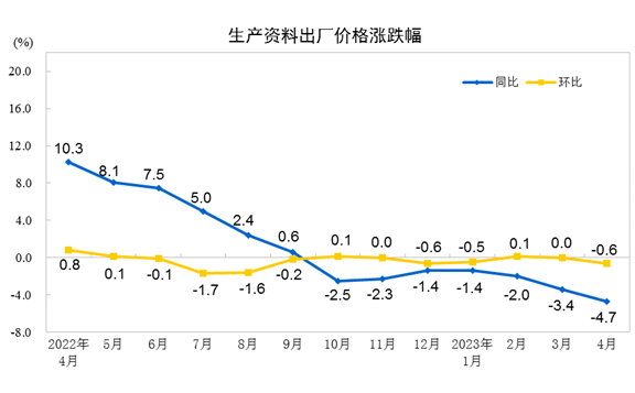 / 【经济资讯】023年4月份工业生产者出厂价格同比下降3.6% 环比下降0.5%