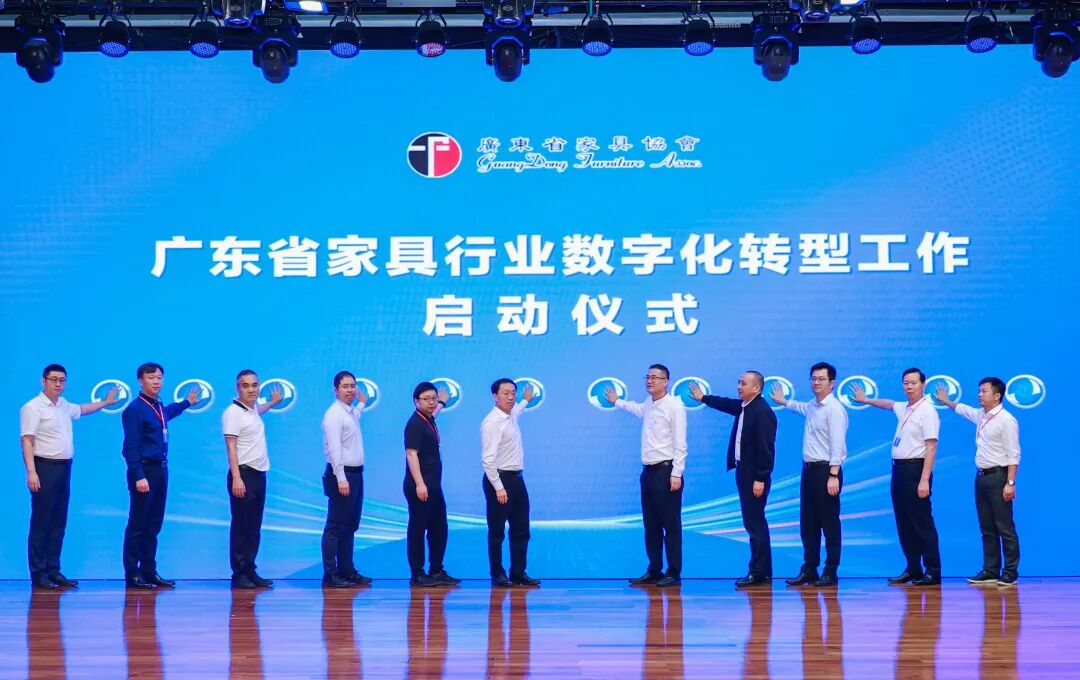 会上,举行了广东省家具行业数字化转型工作启动仪式,省工业和信息化厅二级巡视员庄乐从,省家具协会会长王克,省工业和信息化厅消费品工业处三级调研员许建成,佛山市南海区九江镇党委副书记、镇长罗淮东,韶关市林业局科技和产业发展科科长陈来胜,国家家具产品质量检验检测中心(广东)主任海凌超,中山市大涌镇经济发展和科技统计局主任萧凯贤,联邦家私集团董事信息技术部总经理徐新天,尚品集团圆方软件公司副总经理丘权,意达数控科技公司总经理罗炳洪,美云智数科技公司智能制造解决方案总监梁宝瑞共同启动。