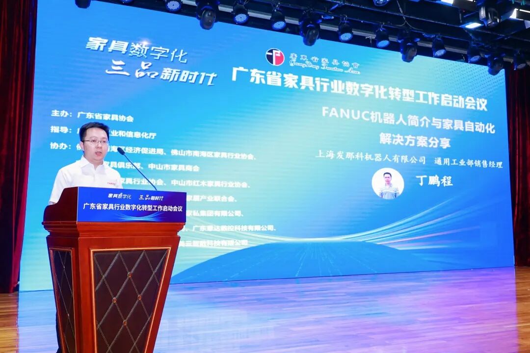 启动会还邀请优秀企业代表分享企业数字化转型经验实践及数字化解决方案,广东联邦家私集团有限公司董事副总裁李虹瑶、上海发那科机器人有限公司通用工业部销售经理丁鹏程、佛山圆方数科工业互联网技术有限公司总经理丘权、美云智数智能制造解决方案总监梁宝瑞分别作主题演讲《你被数字化赋能了吗?》《FANUC机器人简介与家具自动化解决方案分享》《维尚家具数字化发展应用实践》《价值链拉通助力家具行业卓越运营》。