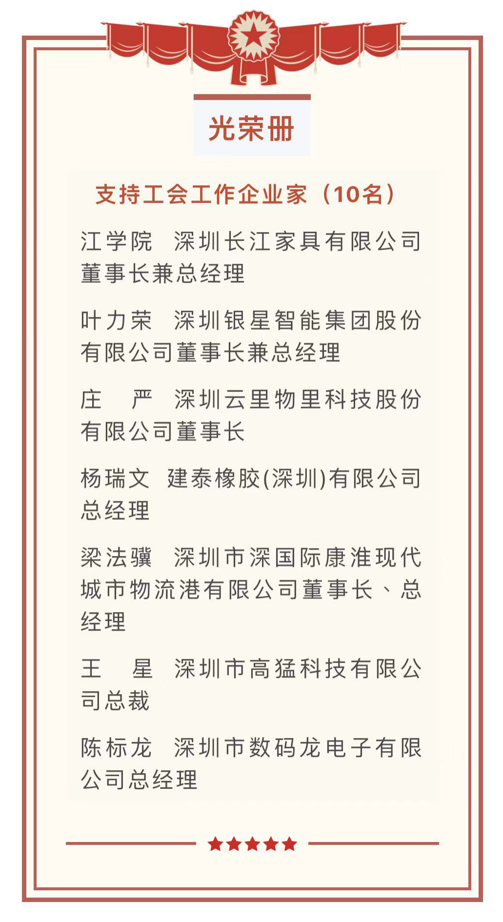 (支持工会工作企业家公示名单)