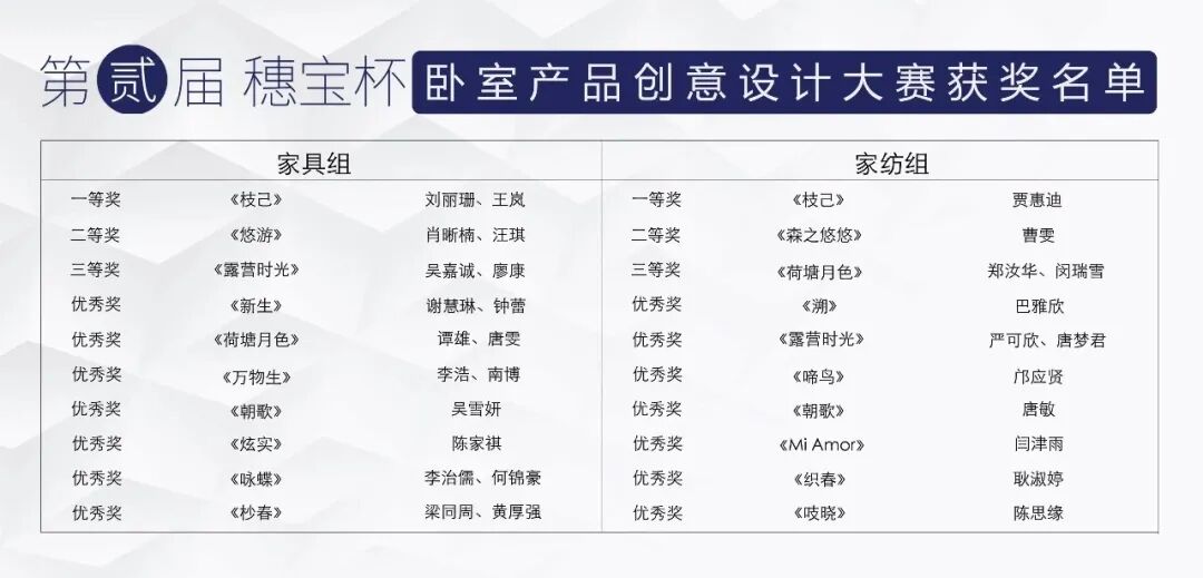 本次大赛评审团主审团由国内顶级设计大师、专家组成,另外邀请了20位来自不同地区,在家居一线市场上深耕多年的穗宝品牌经销商参与现场评审,最终评审结果将结合网络大众投票、穗宝品牌经销商评审团的票选与打分多维度综合得出。主评审团表示,“穗宝杯”活动设计大赛的举办能为许多专业院校的学生和企业设计师搭建一个非常好的平台,也能为行业输送更多人才。