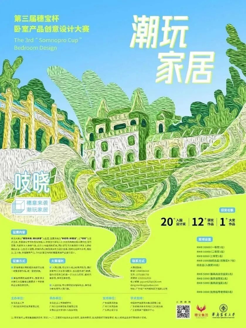 目前第三届“穗宝杯”赛事已经进入征稿环节,报名渠道与赛制要求详见下图海报,活动将于2023年6月30日截止征稿,欢迎有兴趣的同学们踊跃报名,展现自我,创作出个性鲜明、内涵丰富的设计作品华彩绽放,让所有人目睹新生代的设计力量!