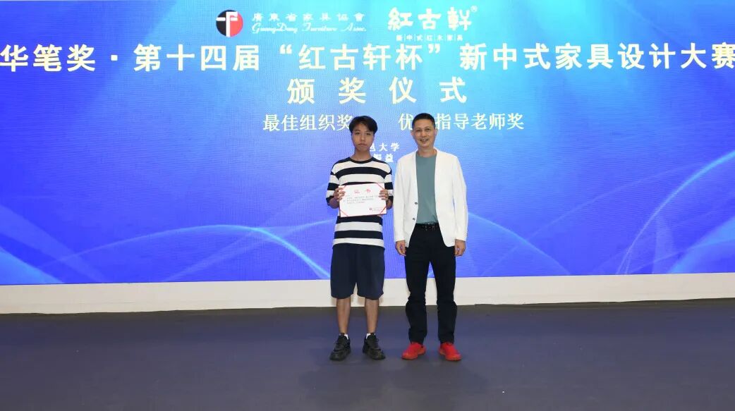 3月19日,由广东省家具协会主办,中山市红古轩家具有限公司承办的华笔奖•第十四届“红古轩杯”新中式家具设计大赛在2022年度华笔奖·系列家具设计大赛颁奖典礼上正式揭晓。典礼上,广东省家具协会会长王克,广东家具协会执行会长、中山市红古轩家具有限公司总经理吴赤宇,为获奖选手进行了现场颁奖。