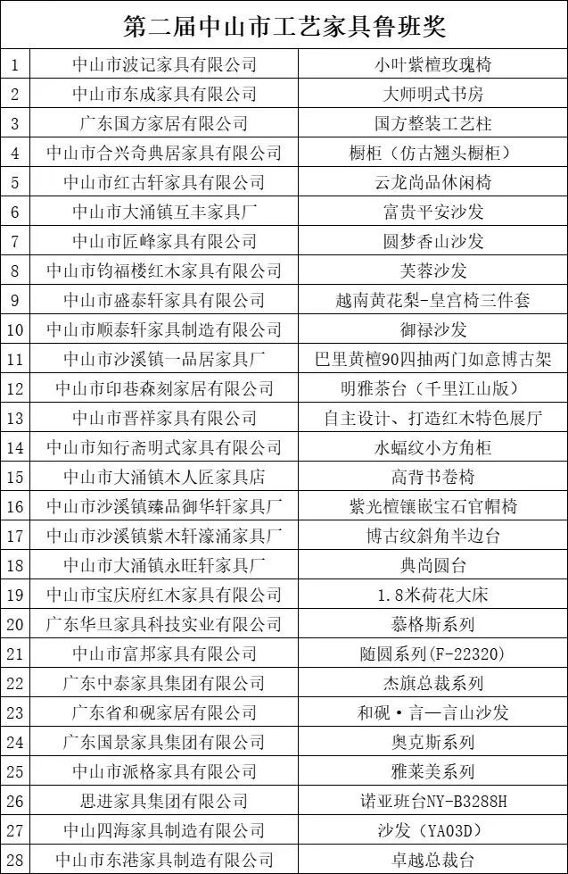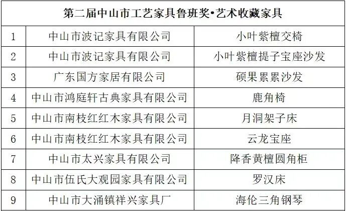 第二届中山市“工艺家具鲁班奖”是由中山市红木家具行业协会、中山市工艺美术协会、中山市家具商会联合主办,以“优秀的设计,精湛的工艺、优良的品质”作为评审标准,以此来树立标杆企业、弘扬匠心精神、赋能品牌价值,推进当代家具行业升级发展。经评审,共有59件作品分别获得中山市工艺家具鲁班奖•艺术收藏家具、创意家具、鲁班奖。