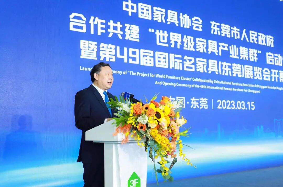 3月15日,中国家具协会与东莞市人民政府合作共建“世界级家具产业集群”启动仪式在东莞市厚街镇举行。