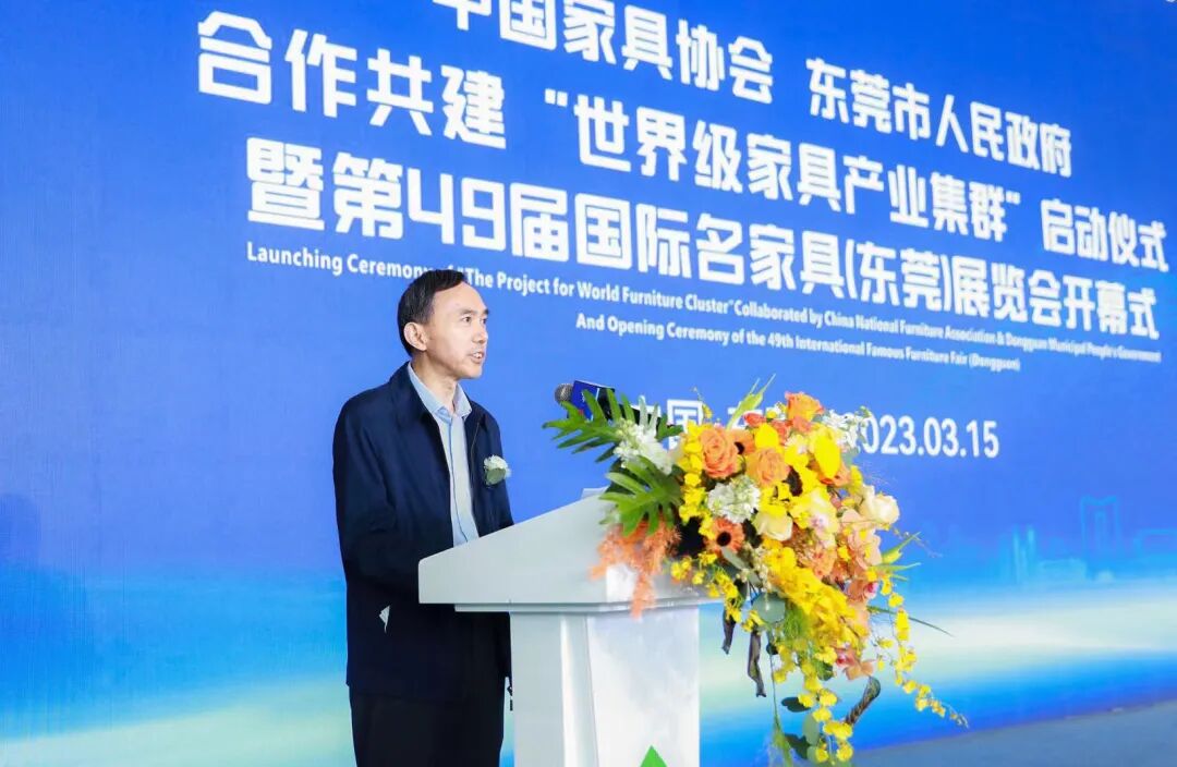 徐祥楠理事长在启动仪式上致辞。他指出,东莞是我国对外开放的重要窗口,为形成全球家具行业的制造、贸易、创新中心,奠定了坚实基础。中国家协在工信部的支持和指导下,与东莞市政府合作共建“世界级家具产业集群”,将打造具有全球示范意义的先进产业基地,全面提升中国家具行业的国际竞争力。厚街是“中国家具展览贸易之都”,为世界级家具产业集群的建立创造了核心条件,推动中国家具品牌以崭新姿态迈入新阶段、开启新征程。