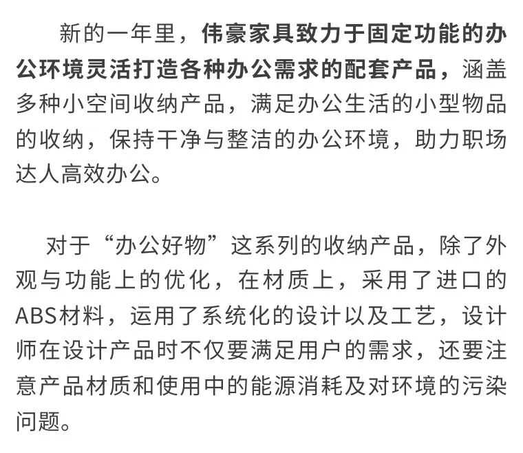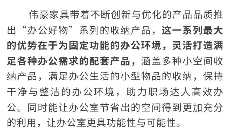 在中国家博会(广州)上伟豪家具将推出收纳系列“办公好物”产品。