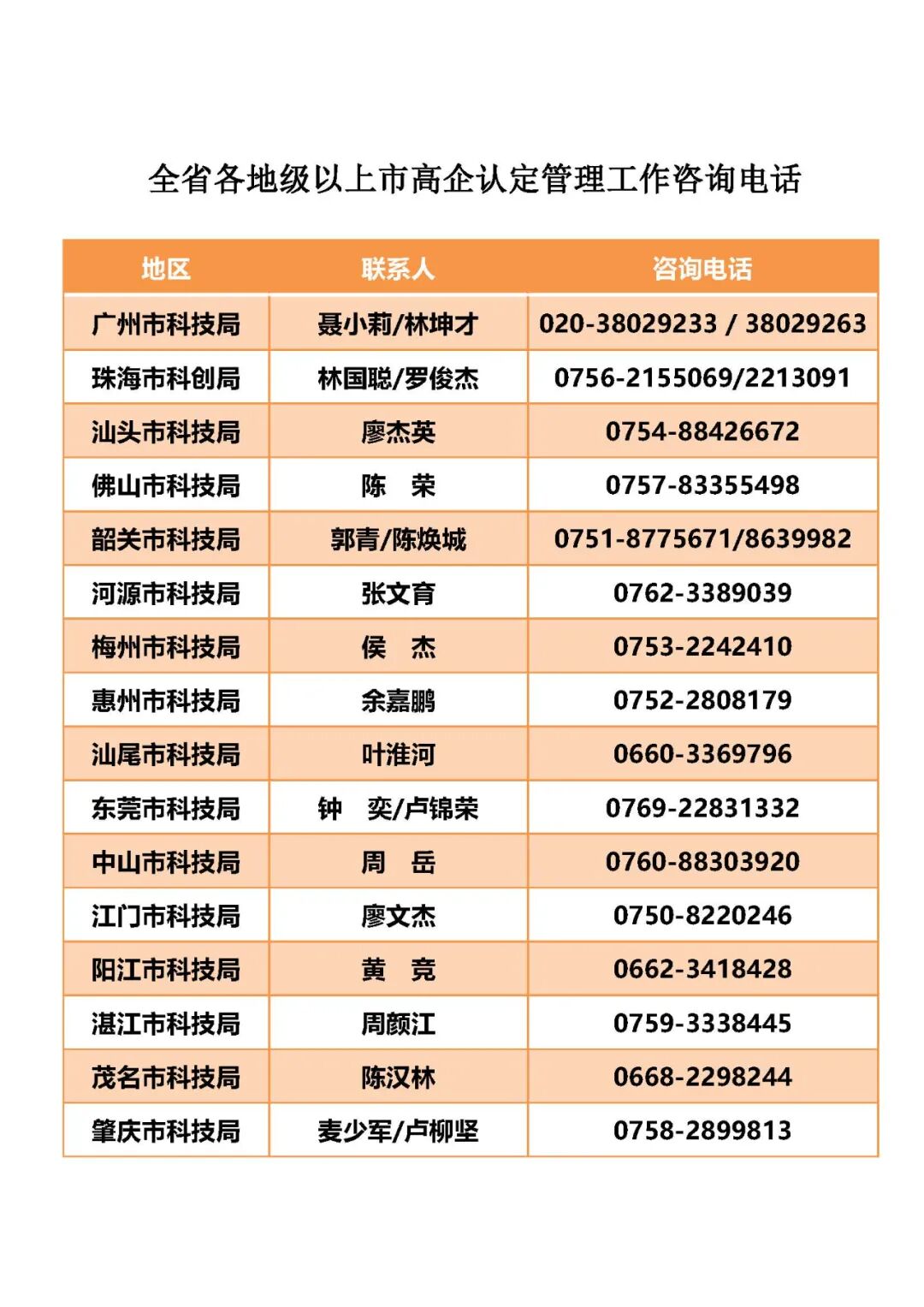 5.全省各地级以上市高企认定管理工作咨询电话