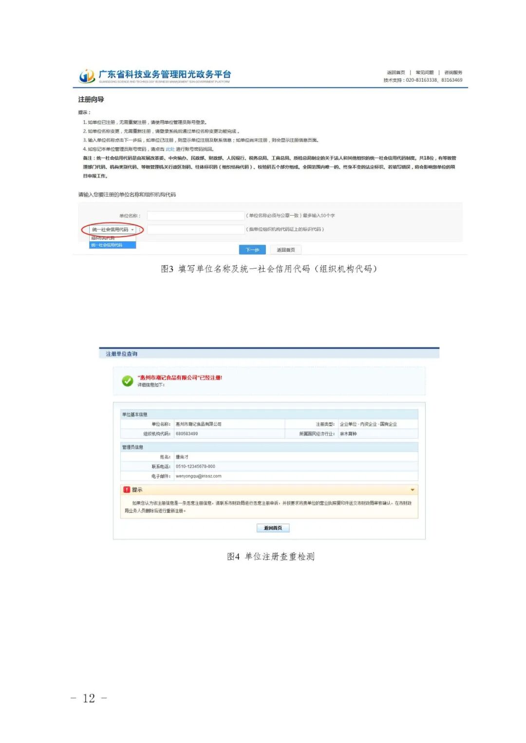 二、为确保单位账号的唯一性,用户注册时,省阳光政务平台将根据注册单位名称、统一社会信用代码与平台内已有数据进行比对,进行自动查重检测。若发现单位已注册,系统将显示无 需再次注册的提示信息。