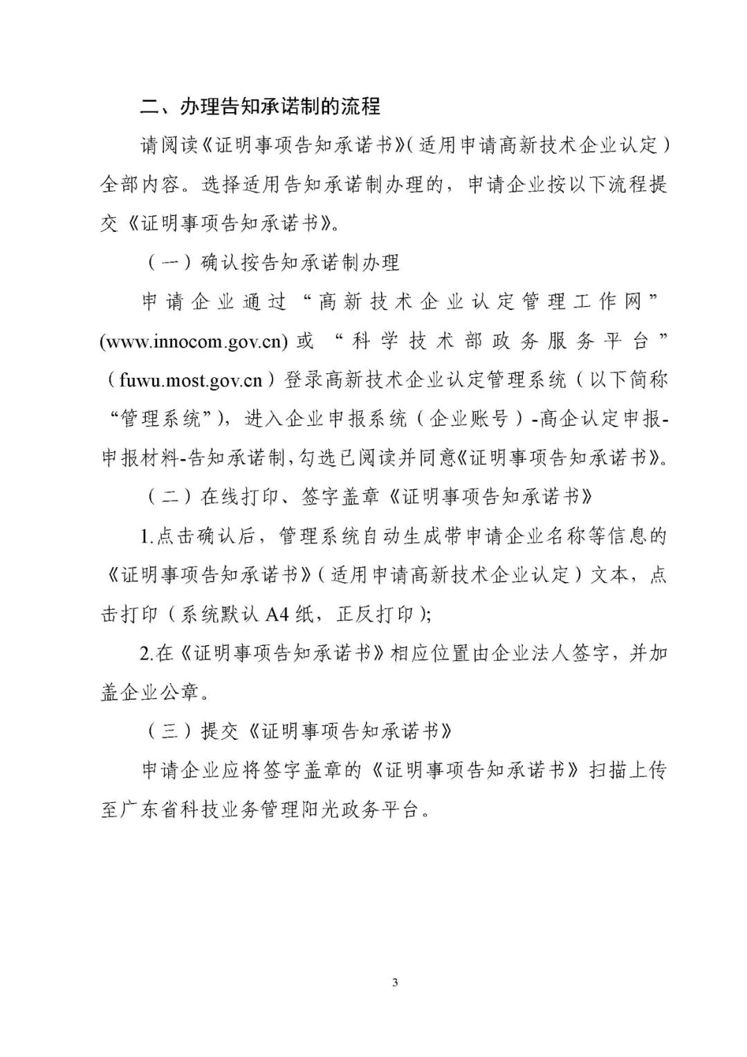 2.可自主选择适用“告知承诺制”。根据科技部《关于高新技术企业认定有关证明事项实行告知承诺制的通知》(国科发火〔2021〕362号,附件3),企业可以自主选择适用“告知承诺制”,按要求在“国家高企工作网”中填报生成《证明事项告知承诺书》,签字盖章后上传到“省阳光政务平台”。适用“告知承诺制”的企业不再需要提供营业执照等企业注册登记证件和专利证书等企业知识产权证件。