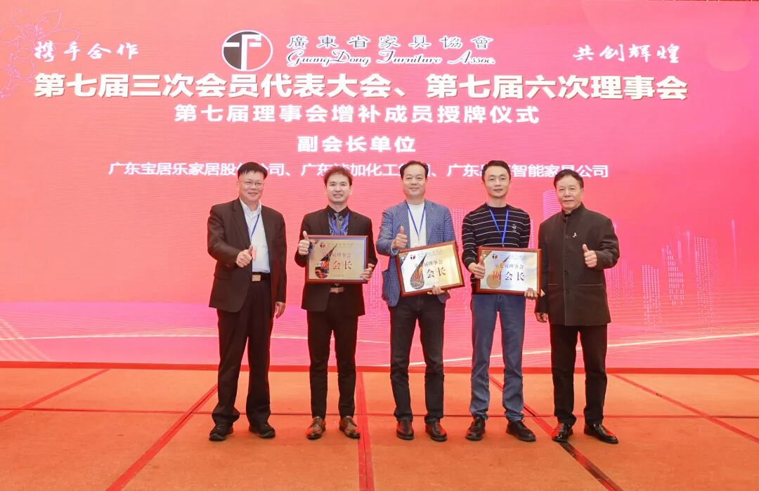 为加强协会组织建设,根据《广东省家具协会章程》规定,会议审议通过了《第七届理事会调整议案》,同时举行了增补成员授牌仪式。增补广东宝居乐家居股份有限公司、广东漆加化工集团有限公司、广东易卓智能家具有限公司为副会长单位,佛山市信南标紧固件有限公司、广东凯凌生态环境科技有限公司、广东意达数控科技有限公司为理事单位。由于企业经营发展转型,免去广东一品实业集团有限公司执行会长单位职务,佛山市佳林物业管理有限公司副会长单位职务。