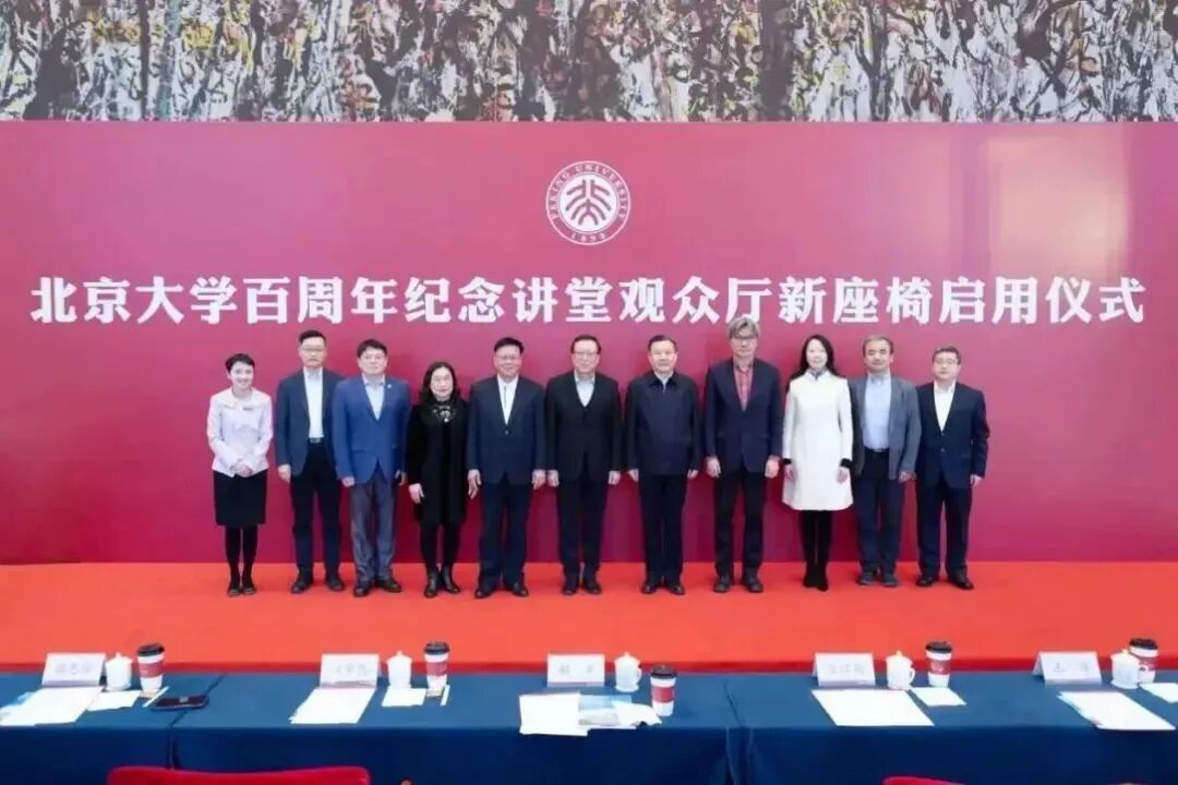 2023年2月18日下午,北京大学百周年纪念讲堂观众厅新座椅启用仪式隆重举行,北京大学名誉校董、深圳长江家具有限公司董事长江学院,中国轻工业联合会党委副书记、中国家具协会理事长徐祥楠应邀出席仪式,北京大学党委书记郝平,北京大学副校长、教务长王博,北京大学副校长、总务长董志勇出席启用仪式。中国家具协会副理事长兼秘书长屠祺,北大党委办公室校长办公室、教育基金会、会议中心、艺术学院相关负责人陪同参加活动,共同感受2009把新座椅的焕然新生、红光熠熠,为师生观众领略人文艺术风采注入活力,为北大讲堂美育事业发展提供动力。