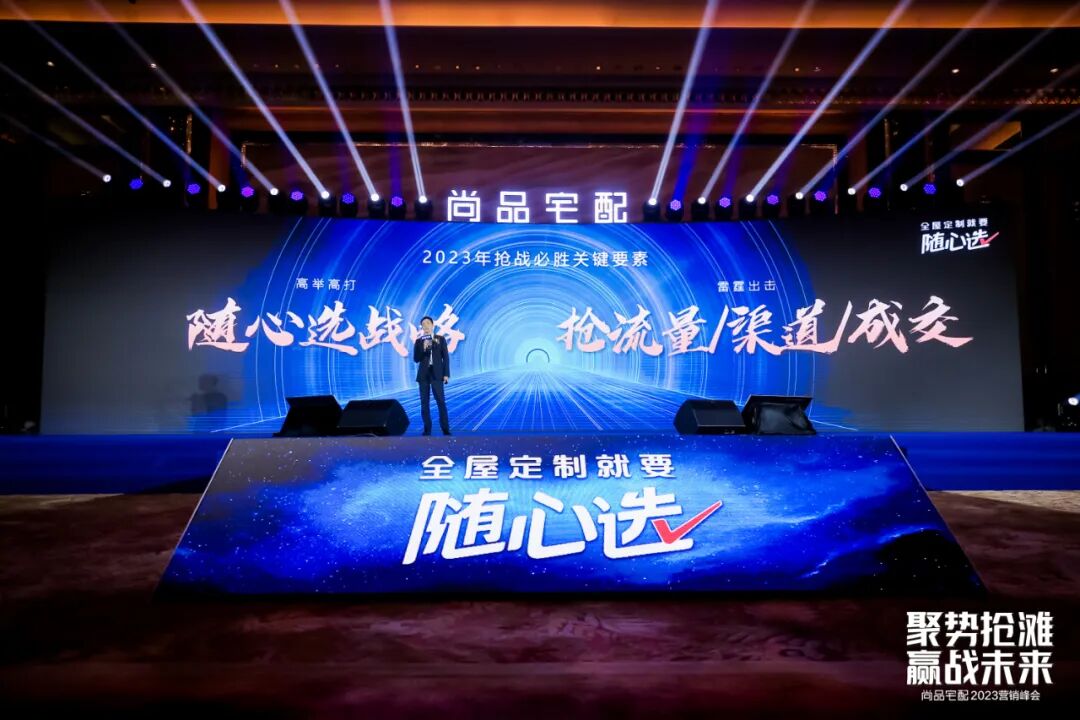随心选新品以“更有颜值、更懂客户、更好搭配”三大特点,针对单身贵族、二人世界、伴你童行、学业有成、家成业就、天伦之乐六大主流人群量身打造。从门板、板材、色彩、细节、美学等各个方面都进行了设计升级,呈现集时尚、品味、舒适于一体的美好随心的家居空间。新战略、新模式、新技术、新展厅、新产品……一系列的创新变革中,同样少不了新的市场策略。尚品宅配品牌副总经理李鹏表示,在新局面下的行业竞争中,尚品宅配须以“抢”为落地策略核心,抢流量、抢渠道、抢成交。抢流量方面,以软件技术为核心优势,尚品宅配始终带着深厚的“互联网基因”,在互联网营销上早已走在了行业前列,如今已构建起行业领先的O2O营销体系。2023年,围绕随心选战略,尚品宅配将通过全渠道精准获客布局、个性化直播活动、全平台线上引流赋能及系统化代运营赋能,激发全域获客能量为门店引流、市场拓展深度赋能。此外,今年尚品宅配也将在多渠道中抢占楼盘战场,大力拓展拎包渠道。与地产物业企业的紧密合作抢占楼盘战场,是尚品宅配在新模式下聚焦发展的渠道。大会现场,尚品宅配与保利物业、美的置业、越秀服务、万科、雅居乐、卓越物业、睿尚等地产物业、智能家居公司共同启动随心选拎包战略合作。于尚品宅配而言,地产物业拥有快速、精准、高效地触达核心消费群体天然优势,掌握着绝对流量的入口;于地产物业而言,尚品宅配的随心选模式给予消费者充分的主导权、选择权,更有强大的供应链系统作为后盾,为消费者提供高质量的全案定制服务。本次上下游两端合作,是大势所趋下的协同发展,也是为消费者实现“省心省力拎包入住”的重要举措。