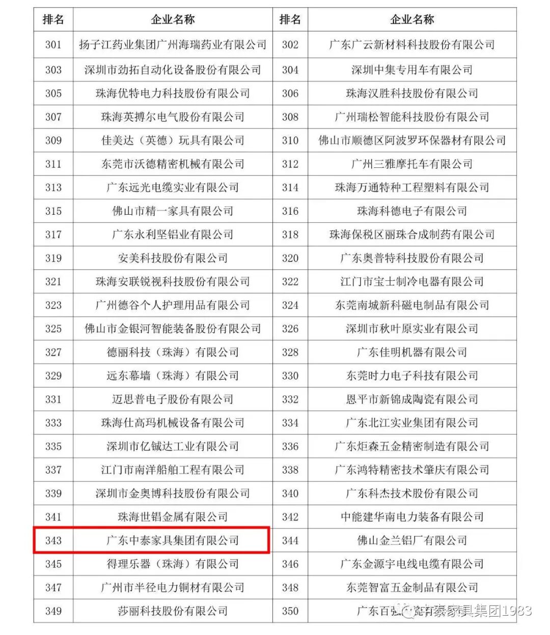 中泰家具集团荣膺2022广东省制造业企业500强,连续多年入选,是对中泰的肯定,也是一种鞭策。