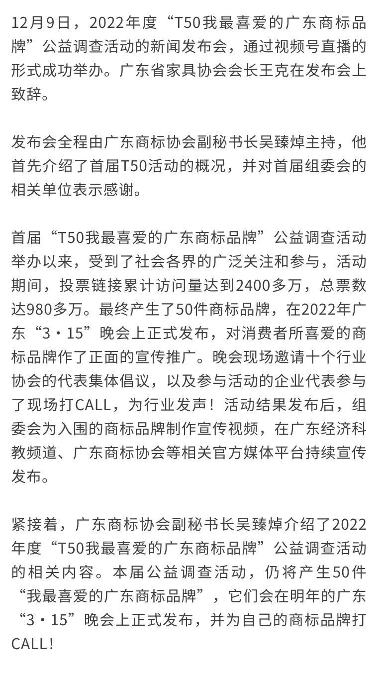 【协会信息】2022年度“T50我最喜爱的广东商标品牌”公益调查活动发布会成功举办 广东家协领导致辞