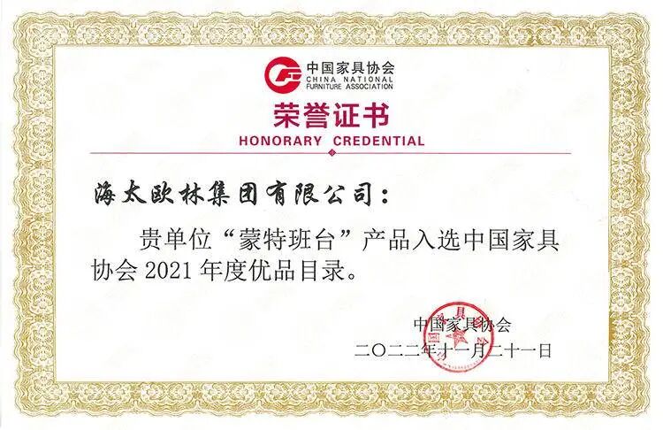 蒙特系列自面世以来广受市场好评,凭借浪漫主义美学设计与智能科技完美结合,蒙特班台成功入选中国家具协会年度优品目录,展现出强大的企业核心优势。
