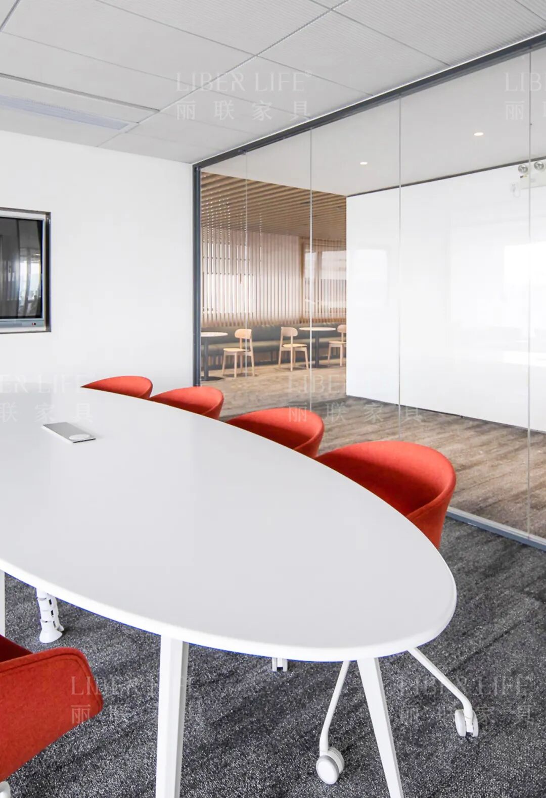 Furniture color distinction can also be more quickly divided for each area of the functional model. Such as the form and size of the meeting and negotiation space and multifunctional roadshow hall can use color to further strengthen or weaken its overall atmosphere, so as to meet its appropriate use pattern and purpose. Small conference rooms use simple white and bright warm colors to create a relatively relaxed negotiation environment, while large conference rooms use more solemn cold colors with its more solemn and serious atmosphere of the meeting function.
