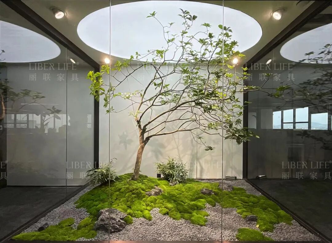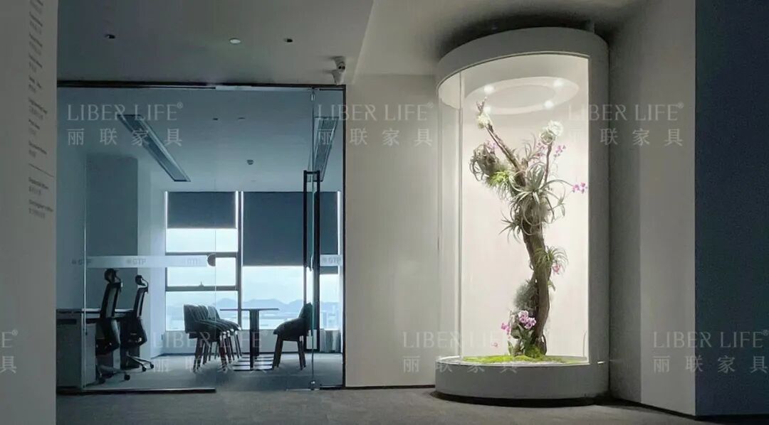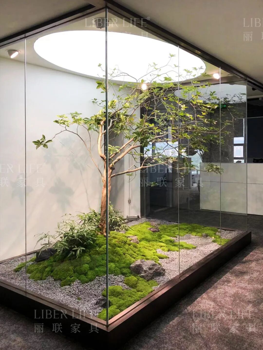 研究表明,在空间内种植植物的办公室可以提高15%的生产力,并且降低生理压力,提高员工幸福感,提升注意力。同时绿色景观也能缓解长时间计算机办公的视觉疲劳。Studies have shown that offices with plants in their Spaces can increase productivity by 15%, reduce physical stress, increase employee happiness and improve concentration. At the same time, the green landscape can also relieve the visual fatigue of long time computer office.绿植系统是整个办公空间呈现绿色、生态、科技、智慧的四维结合体,每一处植物从选择到立意再至塑形,皆有着特殊的意义,陪伴着企业的发展与使用者的成长。The green plant system is a four-dimensional combination of green, ecology, science and technology, and wisdom in the whole office space. Every plant has special significance from selection to conception to shaping, which accompanies the development of enterprises and the growth of users.