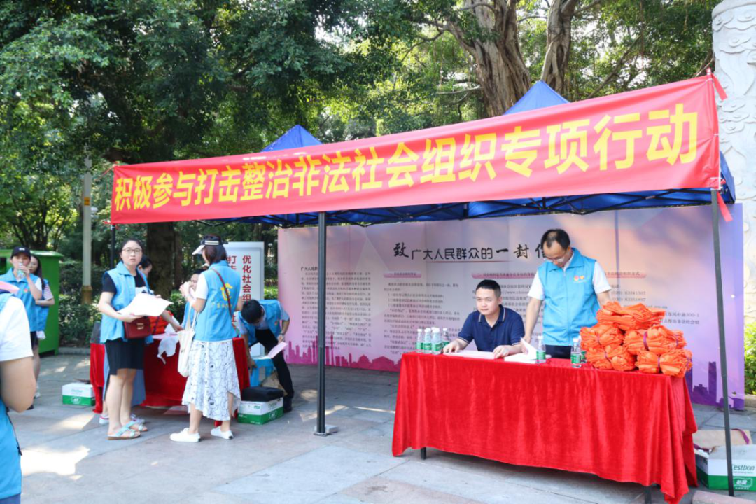 图为:广东省民政厅开展打击整治非法社会组织专项行动线下普法活动。