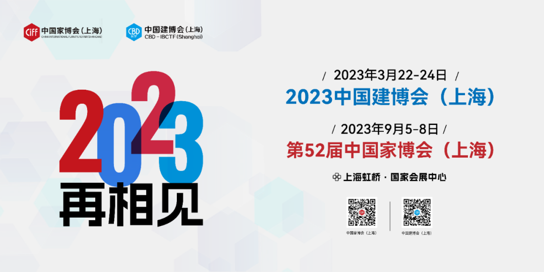 2023年3月22-24日,诚挚邀请您前往上海虹桥·国家会展中心,共聚2023中国建博会(上海)!2023年9月5-8日,第52届中国家博会(上海)将在上海虹桥·国家会展中心举办!