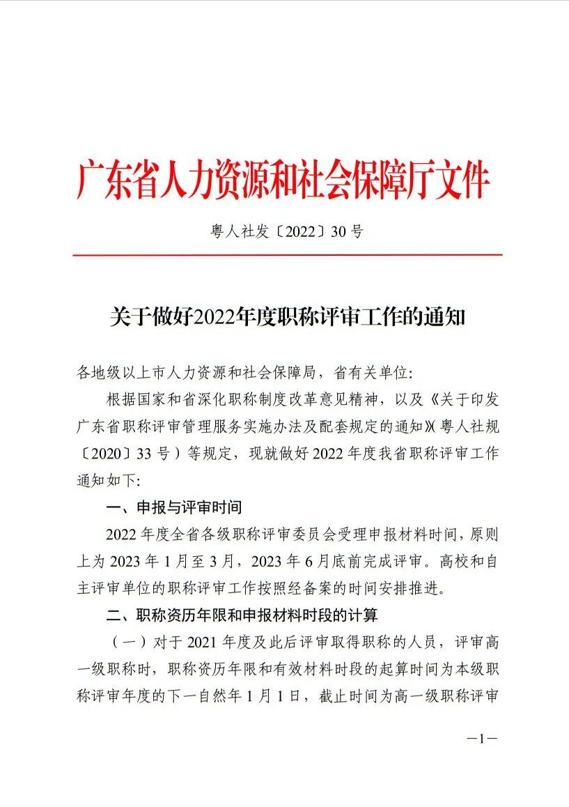 【职称评审】转发:关于做好2022年度职称评审工作的通知 (粤人社发〔2022〕30 号)